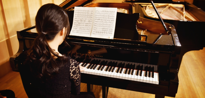 피아노를 연주하며 지친 마음을 달래고, 곡을 완성하며