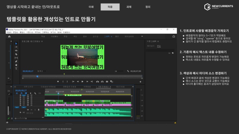 유튜브 영상 콘텐츠 편집 기본 과정입니다.