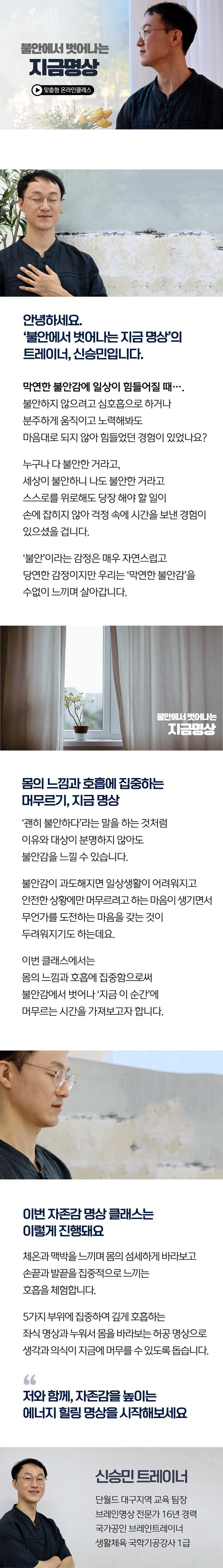 안녕하세요. 브레인 명상호흡 코치입니다.