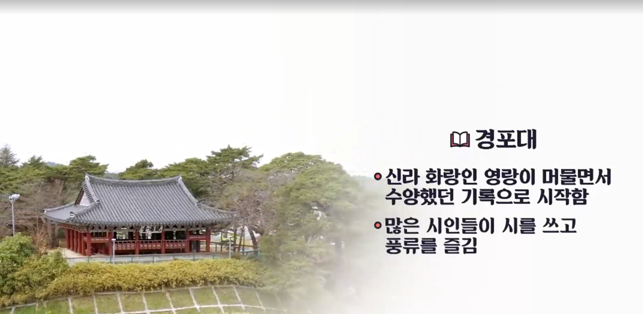 - 신라 화랑인 영랑이 머물면서 수양했던 기록으로 시작함