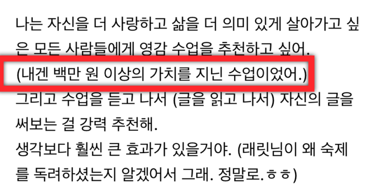 (래릿의 글을 통해 '한 달'만에 생긴 변화 / 영감수업 수강생 지우님 후기)