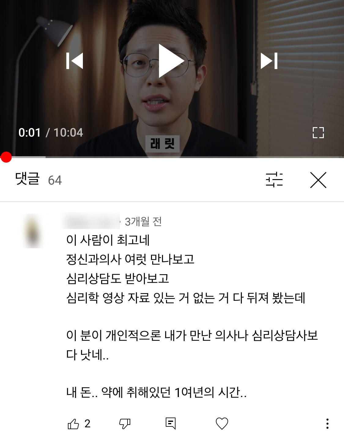 나름 이겨내려고 책도 읽고 강의도 듣고 심리상담, 정신과 치료도