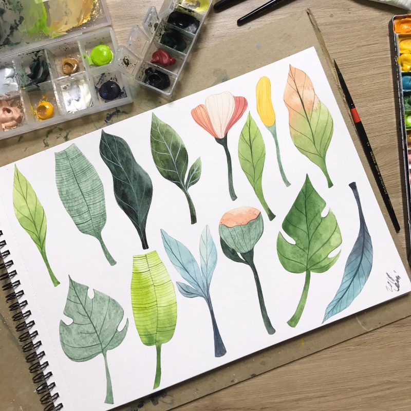 10강투명함이 살아 있는 감성 잎 일러스트14:03