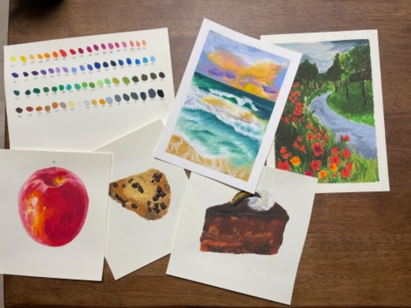 재료 사용법, 기본 도형 스케치, 과일, 디저트, 풍경 등 다양하게 연습해보는 시간을
