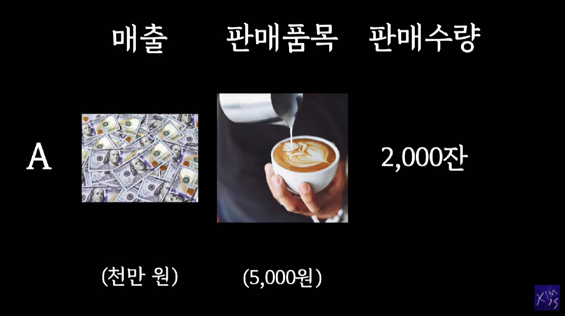 A는 5천 원의 커피를 2천 잔이나 팔아야 했지만,