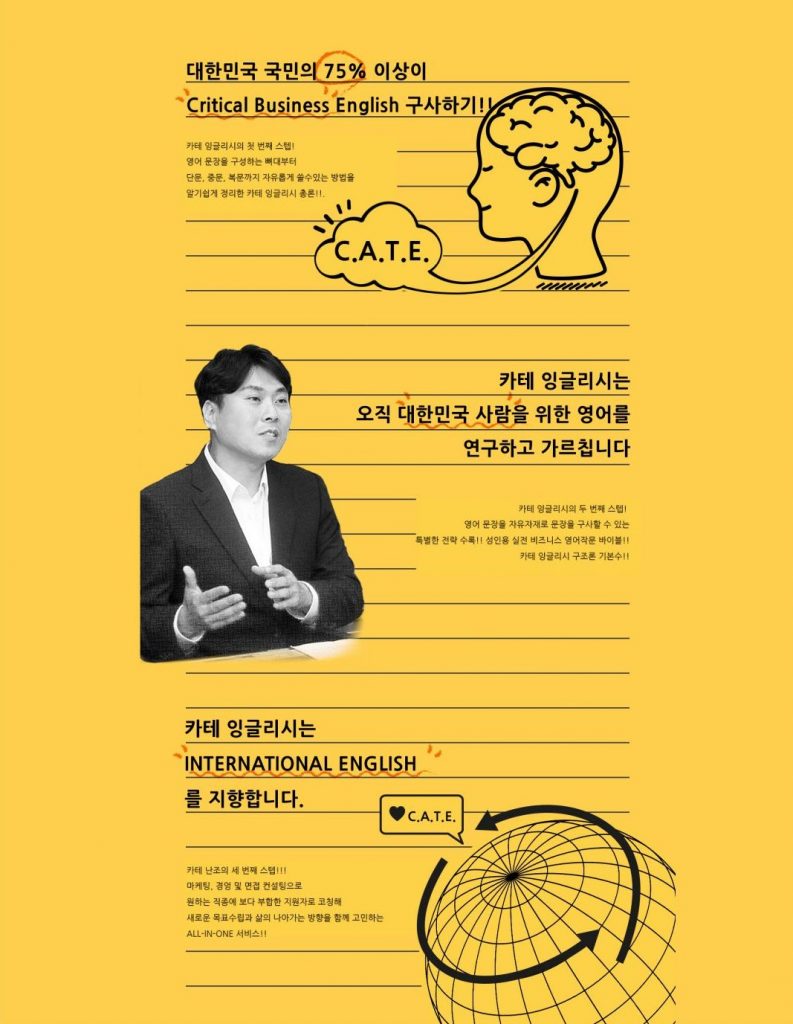 카테(C.A.T.E.) 잉글리시는 비즈니스 필드에서 고급과정으로 이르기 전 필요한