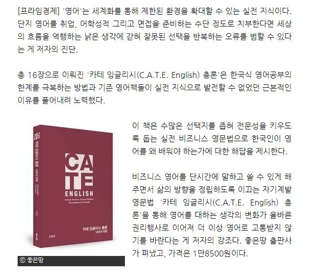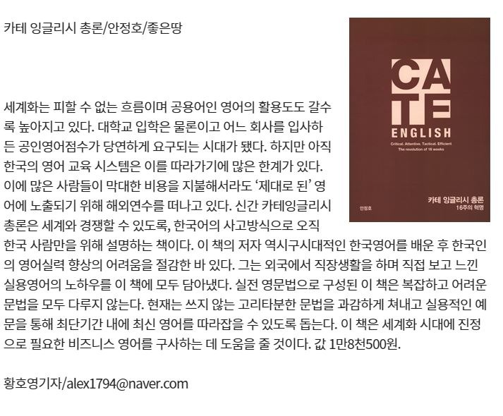 카테(C.A.T.E.) 잉글리시는 비즈니스 필드에서 논리적 영어를 구사하기 위한