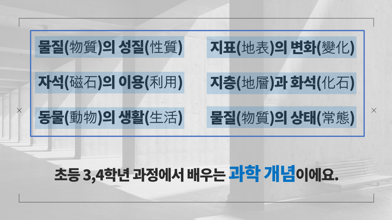 우리나라 교과서의 개념 어휘들을 살펴보면